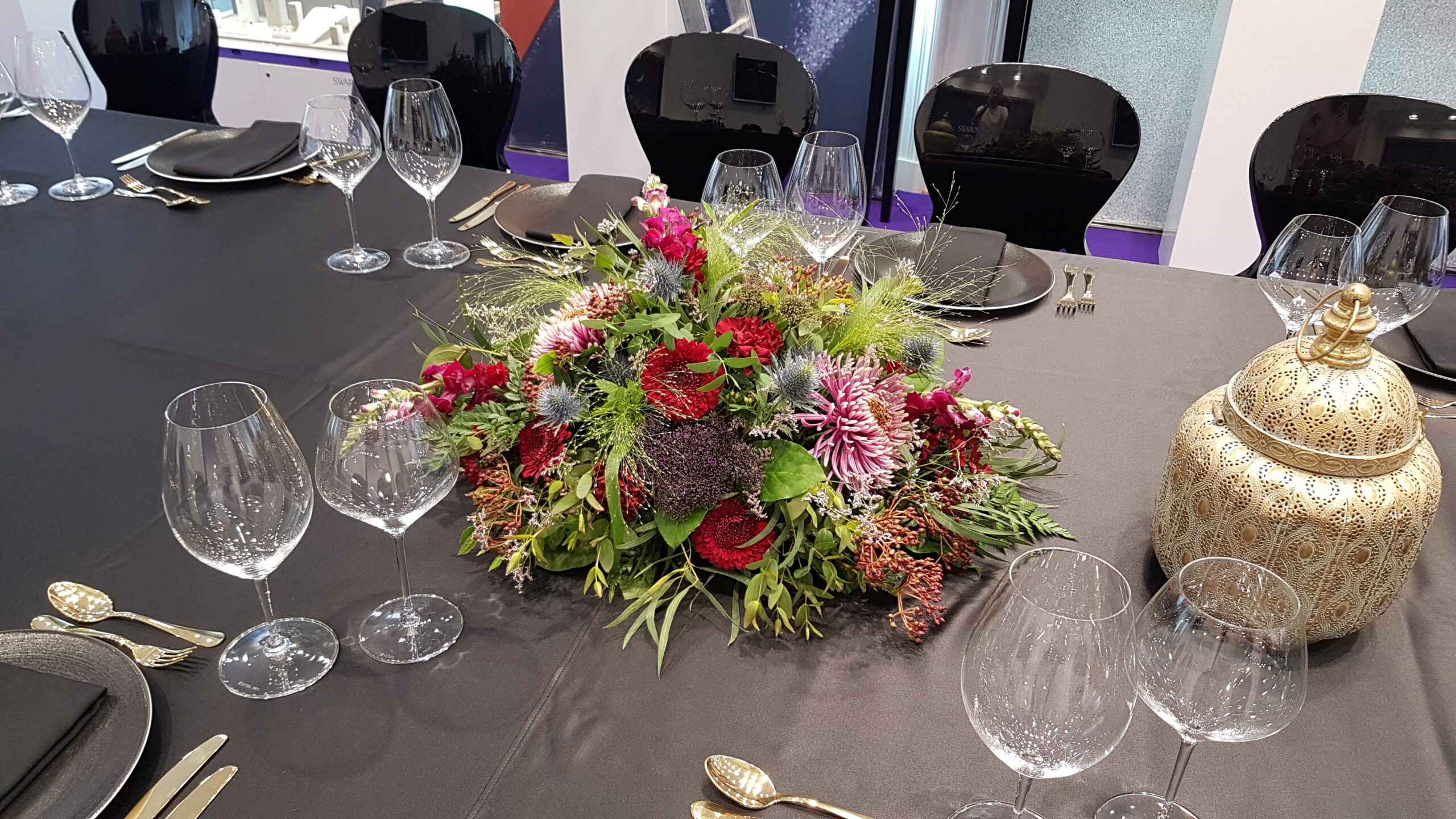 Tmavé elegantní tóny, rafinované detaily a efektní aranžmá, vytvořily scénu plnou magie, stylu a luxusu.